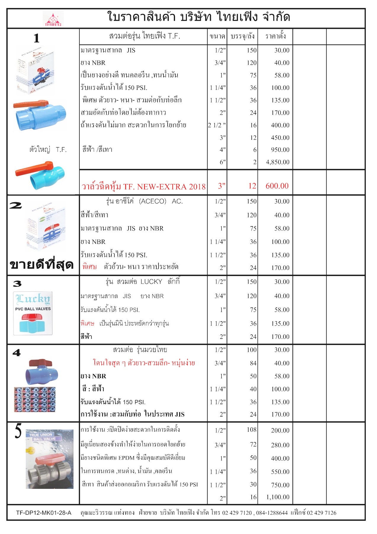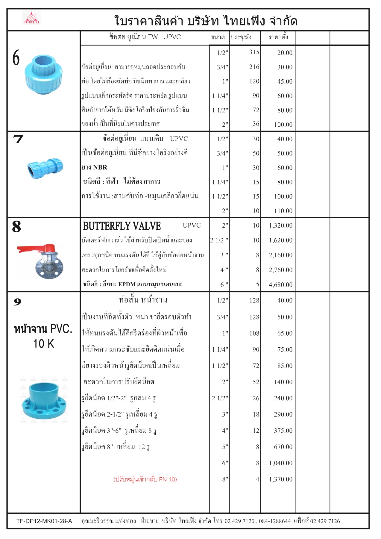 ใบราคา บริษัท ไทยเฟิง จำกัด